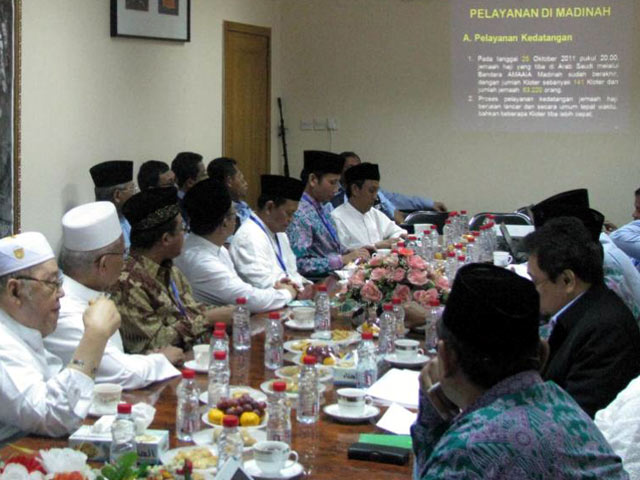Menag yang juga Amirul Haj Suryadharma Ali memimpin rapat evaluasi PPIH Arab Saudi. Rapat berlangsung di PPIH Arab Saudi, di Mekkah, Rabu (26/10).