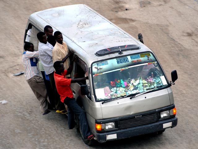 Di Mogadishu, ibukota Somalia, masyarakat menggunakan berbagai jenis sarana transportasi. Keledai masih dipergunakan untuk mengangkut barang, sementara angkutan umum yang relatif minim jumlahnya, selalu mengangkut penumpang melebihi kapasitas.