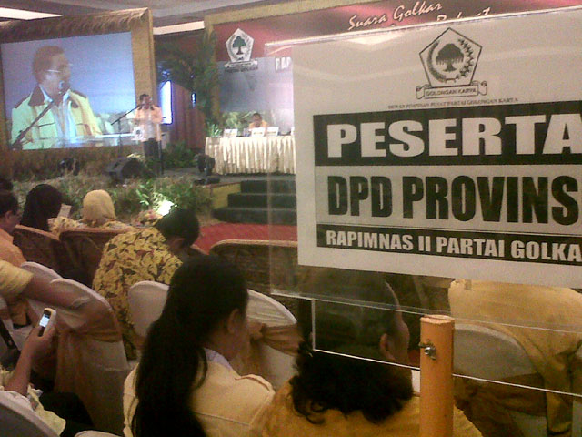 Partai Golkar menggelar Rapimnas di Hotel Mercure, Ancol, Jakarta, Kamis (27/10/2011). 17 dari 33 DPD telah melaporkan pandangannya. Mereka sepakat mengusung Ical sebagai Capres 2014.