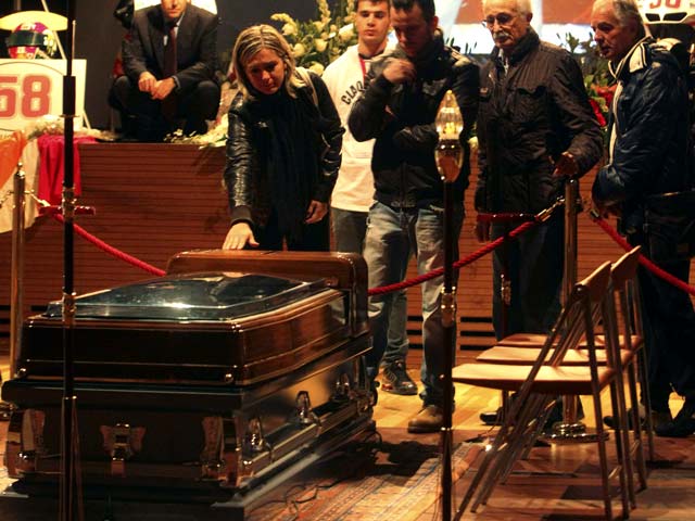 Jenazah Marco Simoncelli disemayamkan di kota kelahirannya, Coriano, Italia, Rabu (26/10/2011). Ribuan fans memberikan penghormatan terakhir untuk Simoncelli.