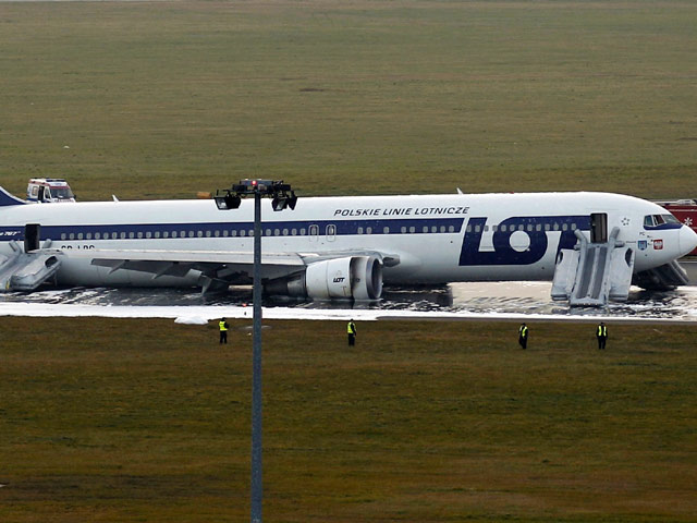Pesawat milik Polish LOT Airlines mendarat darurat di Bandara Warsawa, Polandia, Selasa (1/11) waktu setempat. Pesawat jenis Boeing 767 itu melakukan pendaratan tanpa roda.