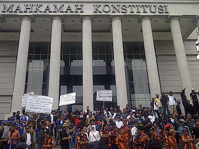 Mahkamah Konstitusi (MK) kembali menggelar sidang sengketa Pemilukada Banten. Sekitar seribu orang dari pasangan cagub-cawagub dan bakal cagub-cawagub Banten tumplek blek di MK.