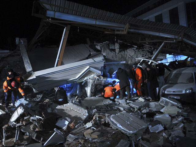 Turki kembali digoyang gempa berkekuatan 5,7 SR Rabu (8/11/2011) malam waktu setempat. Setidaknya tiga orang tewas dan puluhan lainnya terperangkap di bawah reruntuhan bangunan.