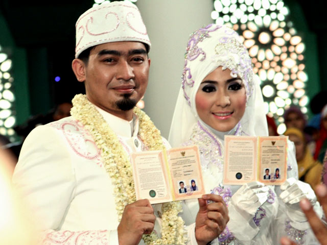 Ustad Solmed dan April resmi menjadi suami isteri usai menggelar akad nikah di Masjid Al Muhajirin, Ciledug, Jumat (11/11/2011). Acara itu pun menjadi istimewa bagi mereka karena diadakan di tanggal cantik.