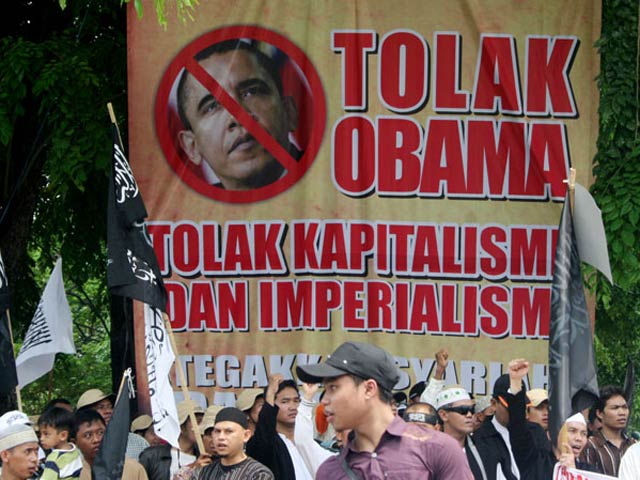 Rencana kedatangan Presiden AS Barrack Obama ke Indonesia kembali mendapat tentangan. Massa Hizbut Tahrir Indonesia (HTI) Surabaya menyuarakan penolakannya di depan Konsul Jenderal (Konjen) AS di Jalan dr. Soetomo.