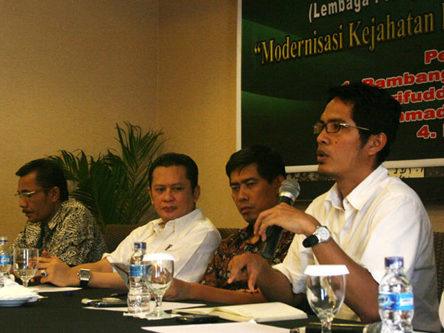 Revisi Undang-undang Tindak Pidana Korupsi perlu mengadopsi pasal-pasal pencucian uang untuk menjerat koruptor seperti terlontar dalam diskusi 'Modernisasi Kejahatan Korupsi dan Upaya Pemberantasannya', di Jakarta, Minggu (13/11). Pencucian uang menjerat sumber uang, pelaku korupsi dan juga orang-orang yang menikmati uang tersebut lewat mekanisme pembuktian terbalik.