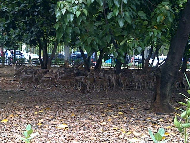 Puluhan rusa di taman Monas, Jakarta Pusat, kehausan karena kolam di taman tersebut kering. Pemprov DKI pun membuat kolam sementara untuk menggantikan kolam permanen yang kering akibat pompa air yang mati.