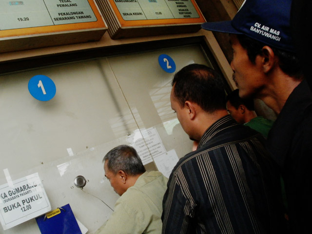 Menjelang liburan Natal dan Tahun Baru tiket kereta api tujuan luar kota Jakarta mulai sulit didapatkan. Pemesan tiket harus antre panjang seperti terlihat di Stasiun Pasar Senen, Jakarta, Rabu (21/12).