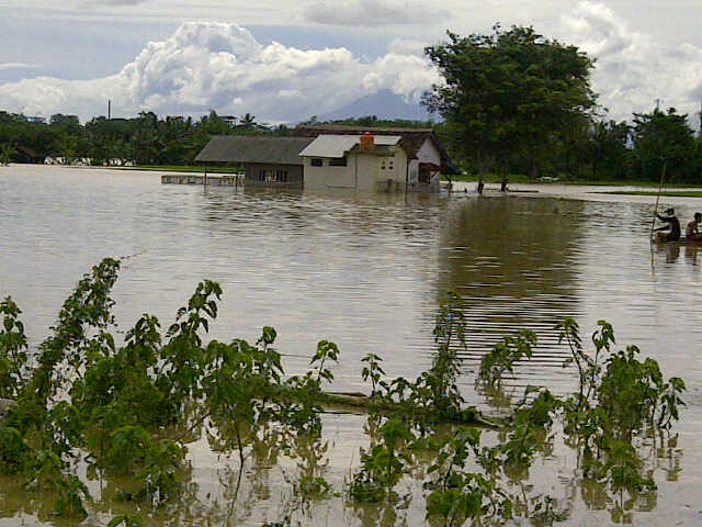 Sungai Cimanceri yang melintasi Desa Cikande, Kecamatan Jayanti, Tangerang, meluap sejak Sabtu (14/1) malam. Luapan sungai membanjiri perumahan penduduk Cikande. Hingga saat ini, belum ada bantuan bagi korban banjir.