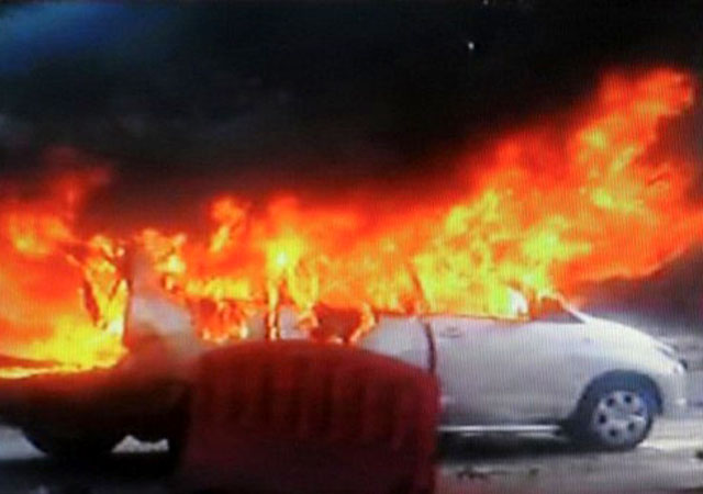 Sebuah mobil milik Kedutaan Besar Israel di New Delhi meledak, Senin (13/2/2012). Belum bisa dipastikan apakah ledakan berasal dari sebuah bom. Kejadian ini masih dalam penyelidikan aparat setempat.