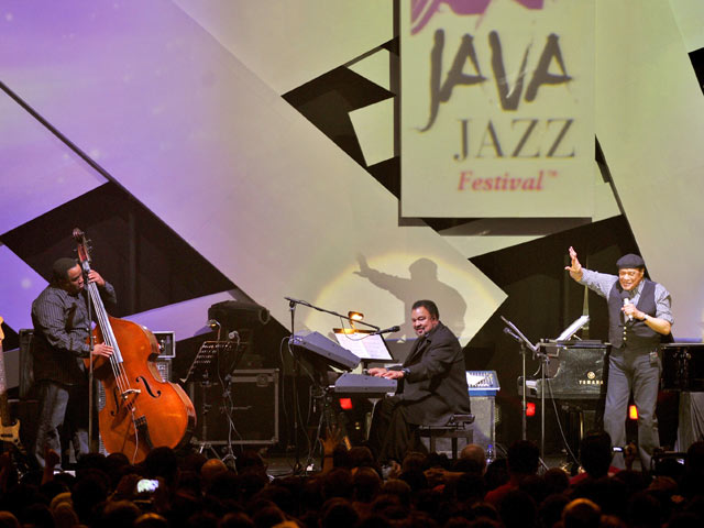 Musisi Jazz Al Jarreau berkolaborasi dengan George Duke Trio membawakan komposisi Jazz di panggung Jakarta International Java Jazz Festival, JIExpo Kemayoran, Jakarta, Jumat (2/3) malam. Mereka tampil bersama sejumlah musisi jazz dari dalam maupun luar negeri tampil dalam pertunjukan ini. (Foto-foto: Antara/Yudhi Mahatma).