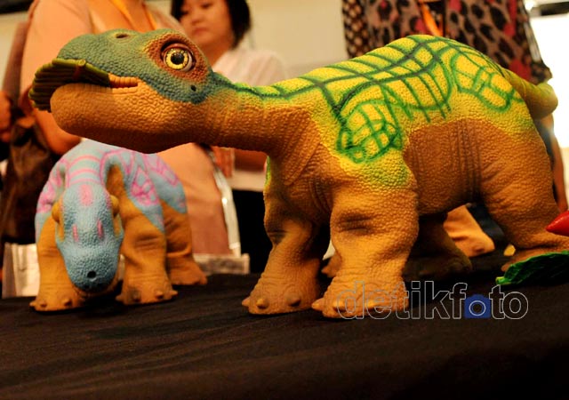Robot berbentuk Dinosaurus yang dapat bergerak serta mengeluarkan suara ini, merupakan salah satu produk yang menyita perhatian pengunjung di antara beberapa jenis produk yang dipamerkan di Hongkong Lifestyle Expo di Jakarta Convention Center (JCC), Jakarta, Jumat(16/3/2012).