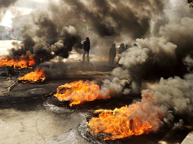 Dari hari ke hari, eskalasi penolakan rencana kenaikan harga BBM terus meningkat seperti terlihat di Makassar, Sulawesi Selatan, Kamis (22/3/2012). Mahasiswa membakar ban bekas dan aksi yang semakin keras. Kemarin, mahasiswa membakar mobil yang melintas.