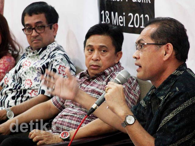 Para tim sukses dari calon Gubernur DKI Jakarta menggelar konferensi pers terkait adanya penemuan Daftar Pemilih Sementara (DPS) yang fiktif di Restoran Sate Khas Senayan, Jakarta, Kamis (18/5/2012). Dalam temuannya diperoleh sekitar 900 ribu sampai 1,4 juta DPS fiktif dengan beberapa kesalahan, seperti adanya satu nama di dua TPS dan identitas ganda pada Nomor Induk Kependudukan (NIK).