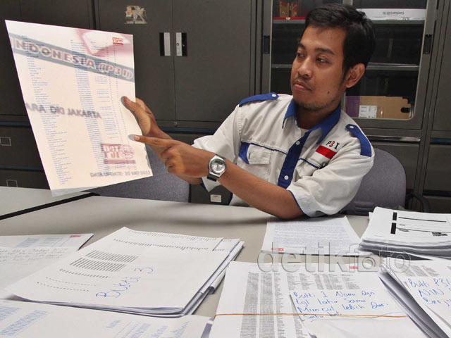 Setumpuk bukti dugaan DPT fiktif ditunjukan Pusat Pergerakan Pemuda Indonesia (PPI) kepada Panwaslu DKI Jakarta, Selasa (22/5/2012). PPI menilai ada rekayasa sistematis untuk memenangkan pasangan calon tertentu dengan daftar pemilih tetap (DPT) fiktif tersebut.