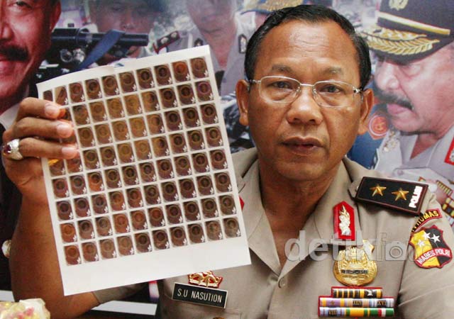 Kadiv Humas Polri Irjen Pol Saud Usman Nasution, menggelar berbagai barang bukti jamu dan obat palsu di Mabes Polri, Jakarta, Selasa (22/5/2012). Ribuan jamu dan obat palsu itu diproduksi di sebuah pabrik di Penjaringan, Jakarta Utara. Omset pabrik tersebut mencapai Rp 8 miliar/tahun.