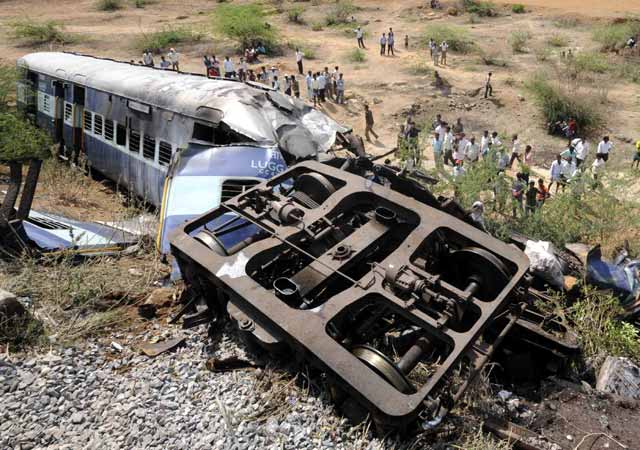 Sebuah kecelakaan yang melibatkan dua kereta api terjadi di India, Selasa (22/5/2012). Sebuah kereta api Hampi Express menabrak kereta barang yang tengah berhenti di Stasiun Penukonda, Andhra Pradesh. Sedikitnya 20 orang tewas dalam peristiwa tersebut.