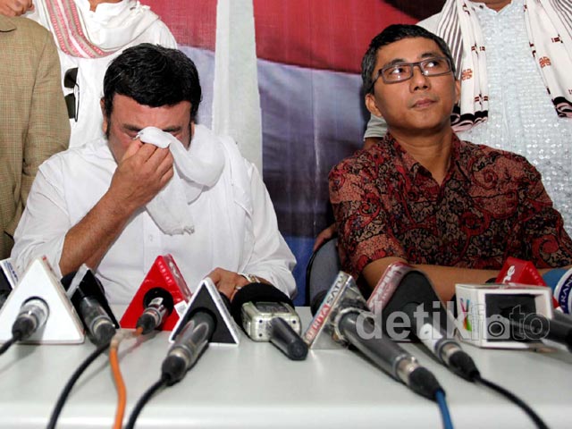 Bang Haji Rhoma Irama mendatangi Panwaslu DKI Jakarta, Senin (6/8/2012). Ia menjelaskan ceramahnya yang dinilai mengandung unsur kesukuan, agama, ras dan antar golongan (SARA) terkait Pilgub DKI Jakarta. Bang Haji menjelaskan dengan menangis dan berurai air mata.