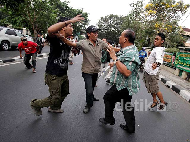 Sekelompok orang yang mengatasnamakan diri sebagai Koalisi Rakyat Anti Mafia Alquran (Korma) berdemonstrasi di depan Gedung Pusat PPP, Jl Diponegoro, Senin (6/8/2012). Namun baru 5 menit berorasi, pendemo langsung dibubarkan belasan orang tidak dikenal. 2 motor rusak dan seorang pendemo mengalami luka-luka.
