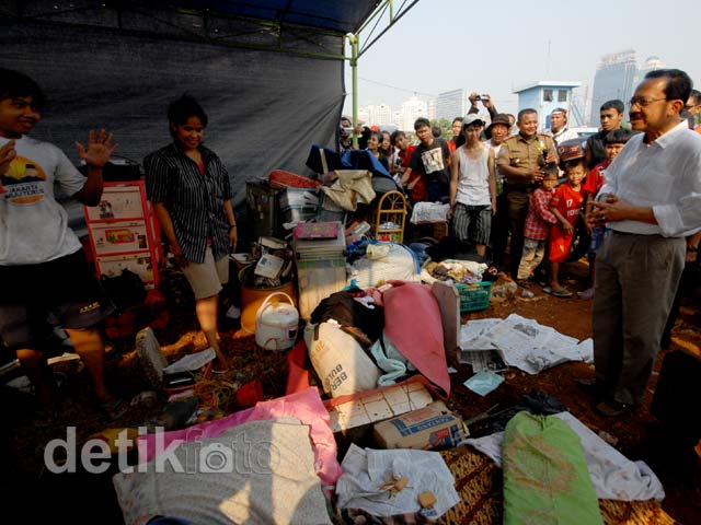 Gubernur dan calon gubernur incumbent Fauzi Bowo (Foke) mengunjungi korban kebakaran Karet Tengsin, Jakarta Pusat, Selasa (7/8). Foke menyatakan keprihatinannya atas musibah yang dialami oleh sedikitnya 1.600 jiwa yang kehilangan rumah.
