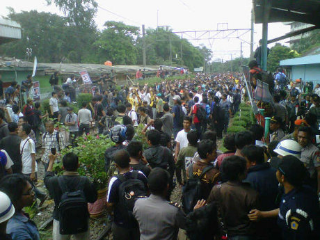 Akses KRL dari Jakarta ke Bogor dan sebaliknya, kembali normal setelah pemblokiran pedagang dan mahasiswa di Stasiun Pondok Cina, dibubarkan paksa oleh ratusan penumpang KRL.