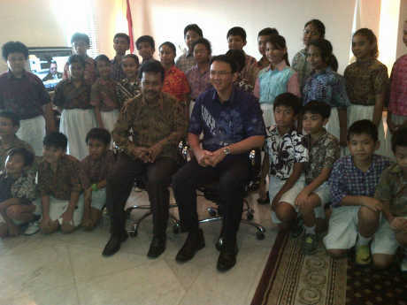 Ruang kerja Ahok mendadak riuh dengan polah lucu dan tawa riang anak-anak SDN Menteng 01 Jakarta, tempat Barack Obama pernah bersekolah. Mereka gembira bertemu sang idola, Ahok.
