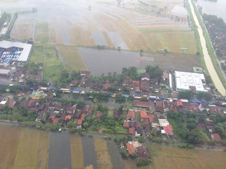 Ketua Palang Merah Indonesia (PMI) Jusuf Kalla meninjau lokasi banjir di Kecamatan Juwana, Kabupaten Pati, Jawa Tengah. JK, begitu ia biasa disapa, datang didampingi anggota-anggota PMI dan juga Bupati Pati Hariyanto.