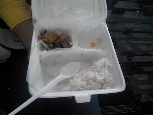 Penerbangan Lion Air Makassar-Yogya mengalami delay 3 jam. Perusahaan ini memberi kompensasi makanan nasi berlauk ayam dan mi. Makanan ini dibagikan ke penumpang di gate 5 Bandara Sultan Hasanuddin.