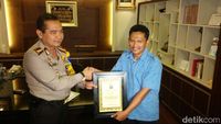 Sopir taksi yang mengantar Sintya, bocah yang diculik di PGC, Jakarta Timur, menerima penghargaan dari polisi.