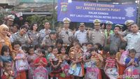 Satlantas Jakarta Pusat membagi-bagikan puluhan tas Hello Kitty kepada anak-anak TK di dekat Terminal Senen. Apa tujuannya?
