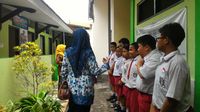 Anak-anak SD 1 Sidokumpul, Desa Pulopancikan, Kabupaten Gresik, Jawa Timur, terlihat ceria. Mereka belajar menanam bibit buah markisa.