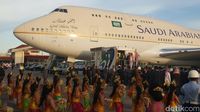 Rombongan Raja Salman telah tiba di Bali. Di Bandara Ngurah Rai, rombongan disambut tari pendet.