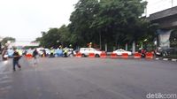 Petugas masih mengevakuasi pohon yang tumbang di Jalan Perwira. Akibatnya lalu lintas yang mengarah ke Lapangan Banteng ditutup polisi.