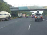 Rombongan Kakorlantas lanjut peninjauan arus balik Natal dengan menyusuri ruas Tol Cipularang arah Cileunyi. Lalu lintas di ruas tol tersebut terlihat lancar.
