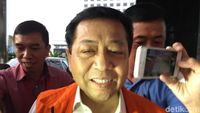 Menjelang waktu magrib, Setya Novanto menjalani pemeriksaan di KPK. Novanto tampak hanya tersenyum.