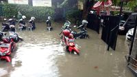 Hujan deras yang mengguyur Jakarta sejak pagi turut membuat kampus Universitas Negeri Jakarta (UNJ) kebanjiran. Air mulai wilayah kampus pada siang hari.