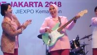 - Buka Lomba Band di Kemayoran, Istri Kapolri Main Gitar Listrik
