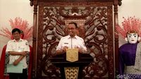 Gubernur DKI Jakarta Anies Baswedan melempar senyum saat ditanya soal pengalaman berkuda bareng Ketum Gerindra Prabowo Subianto.