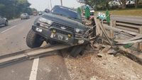 Sebuah kecelakaan tunggal di tol Tangerang-Merak arah Jakarta. Toyota Land Cruiser menabrak pembatas jalan hingga terbang dan berpindah ke jalur Merak.