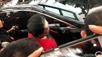 Ketum Megawati Soekarnoputri tiba di lokasi pertemuan dengan Joko Widodo. Ini berarti 9 ketum parpol sudang lengkap berada di lokasi.