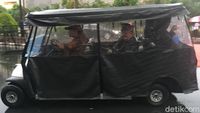 - Senayan Hujan, Alex Noerdin Diantar ke GBK Pakai Mobil Golf