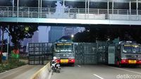 Massa aksi 22 Mei masih berkumpul di depan Bawaslu. Jl Merdeka Barat, Jakpus ditutup dengan pagar besi untuk mencegah massa bergerak ke area Istana Negara.