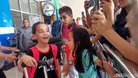 Kehadiran vlogger ini juga disambut penggemarnya saat mendarat di Bandara Sam Ratulangi, Manado.