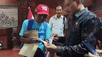 Kakek ini berjalan kaki dari rumahnya di Singaraja, Buleleng, ke kantor Gubernur Bali di Denpasar. Kakek ini berjalan kaki selama 4 hari untuk menempuh 80 km.